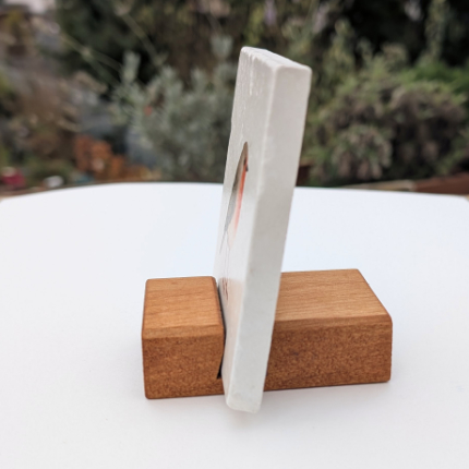 Handgemacht in Ostwestfalen. Der Ständer misst 8cm in der Länge, ist 5cm breit und 2,5cm hoch. Die Fliese ist nicht im Lieferumfang enthalten.