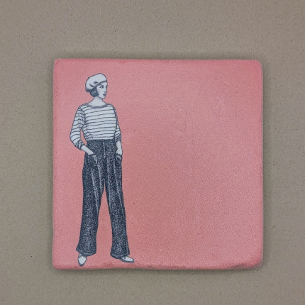 Fliese - Frau mit Streifenshirt